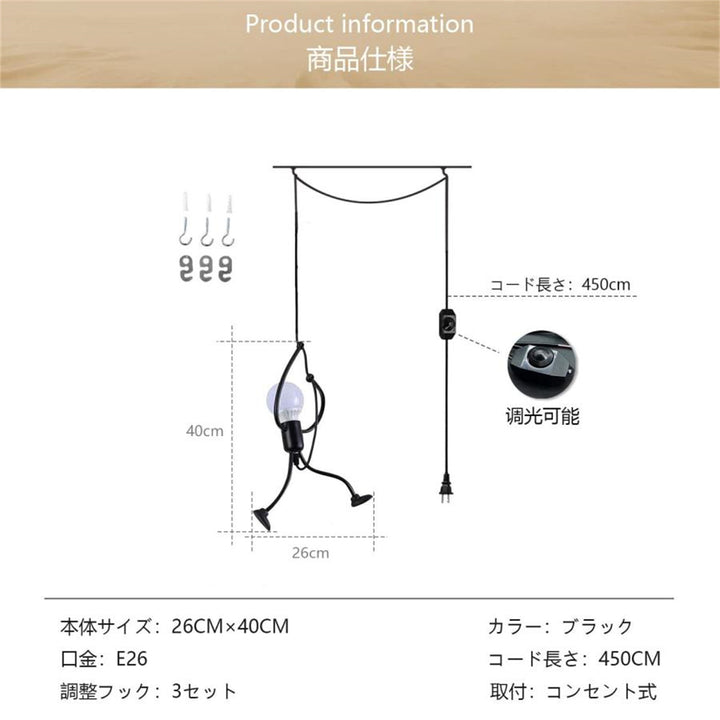 走っているかわいい子の特別なデザインで、シンプルで格好いいペンダントライトです。取り付ける電球によって雰囲気も変わるのでお好みの電球をお楽しみいただけます。照明効果だけでなく、良好な装飾効果も有する。