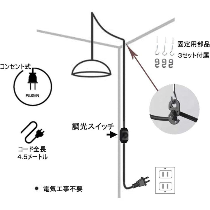 【取付方法】:コンセント式(ON/OFFスイッチor調光スイッチ)
