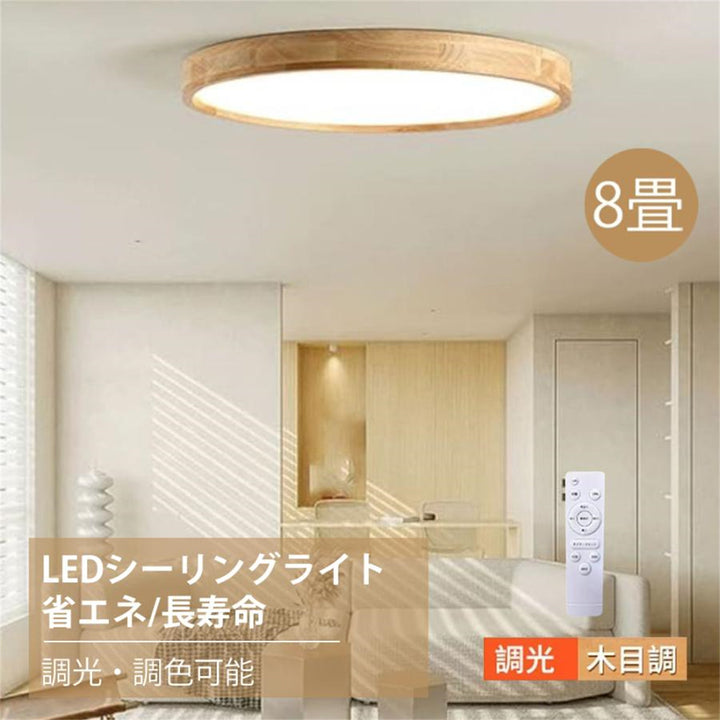 億兆堂 LEDシーリングライト 木目調 引掛け式 無段階調光 天井照明 木枠 リモコン付 メモリ機能 LEDチップ スリープタイム 長寿命 工事不要 取付簡単 和風 シンプル 和室 寝室 省エネ 6〜8畳 おしゃれ 和風 子供部屋 ダイニング リビング 居間 電球不要