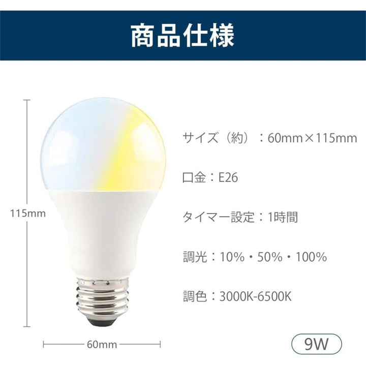 リモコン送信器使用時には、タイマー機能も付属している為、60分でタイマー設定が可能です。ON/OFFボタンは前回メモリそのまま状態で点灯するため、再度調整する手間がかかりません。このLED電球は、従来の白熱電球と比べ、消費電力は約90%を削減て、電気代削減にも多く貢献し、家計に優しい商品です。